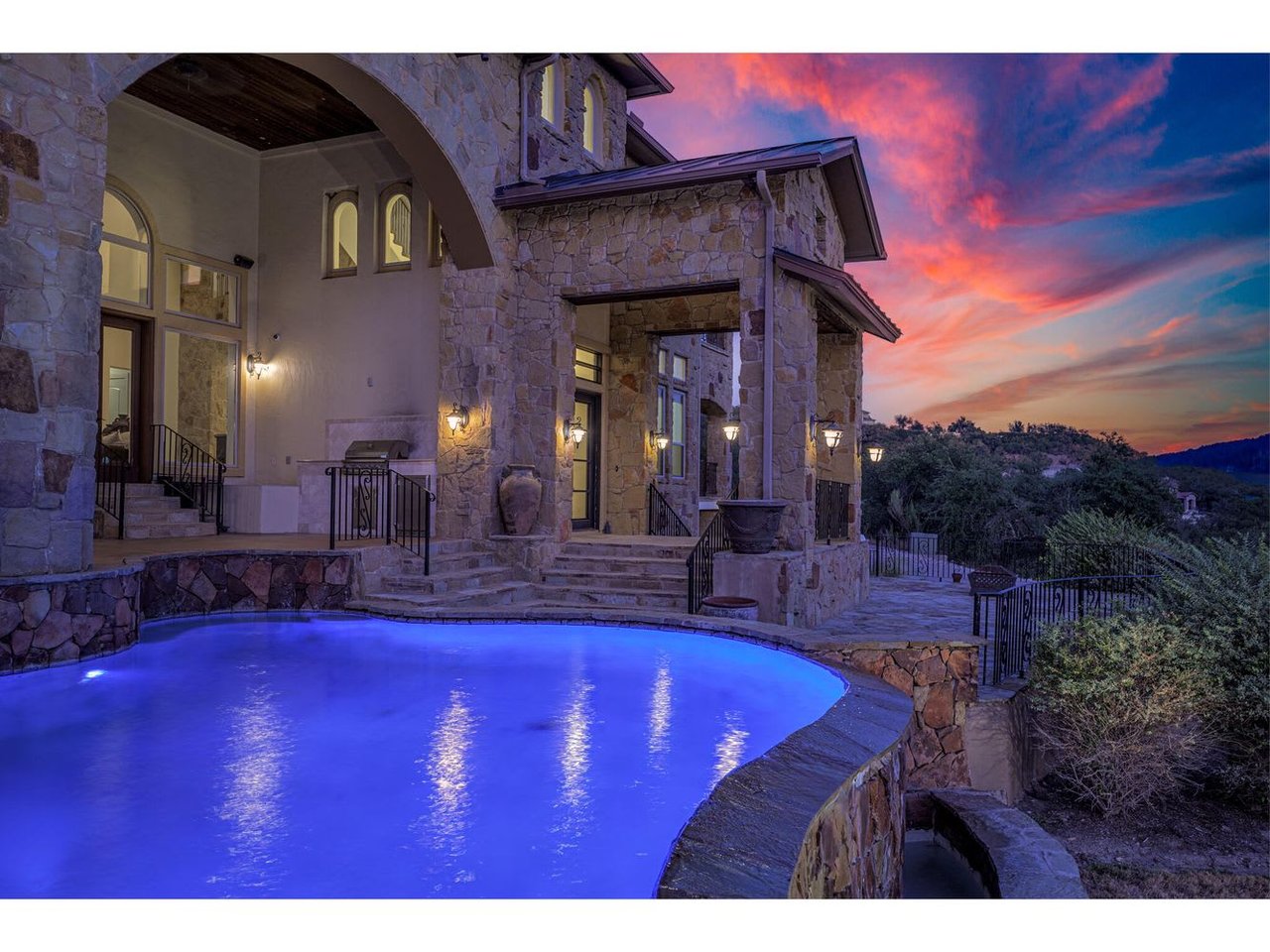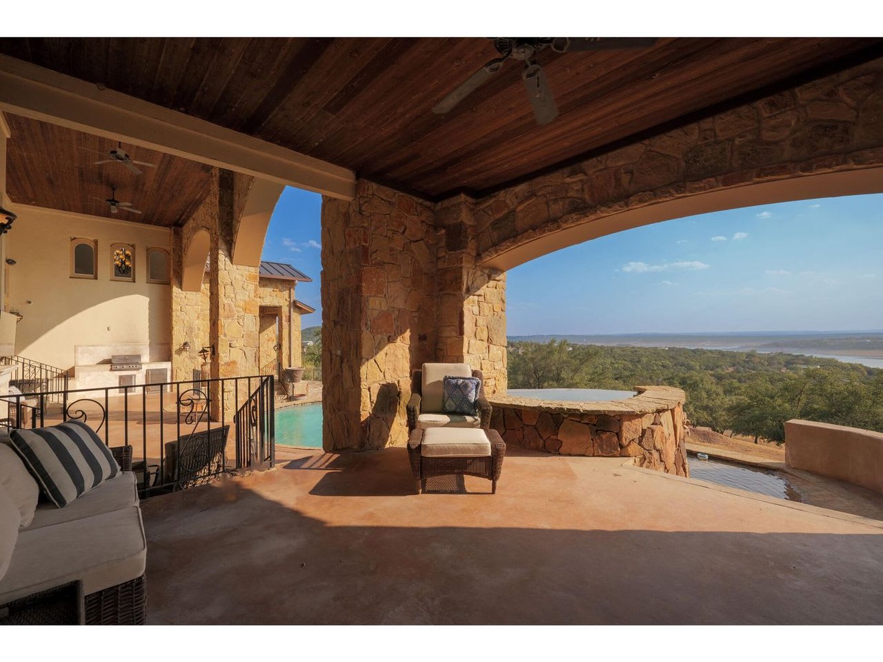 Nestled on nearly 2 acres, this stunning estate boasts panoramic views of Lake Travis and the Texas Hill Country. The seamless flow between indoor and outdoor entertaining spaces is a hallmark of this property. Multiple terraces and balconies offer the perfect vantage points to soak in the breathtaking surroundings. Enjoy alfresco dining, lounging by the fire pit, or dip in the infinity-edge pool while relishing panoramic lake views. The well-appointed chef's kitchen is a culinary enthusiast's dream, equipped with top-of-the-line appliances, granite countertops, and an island for cooking and entertaining. The expansive primary suite is a serene sanctuary, featuring a spa-like ensuite bathroom, sauna, office, gym, a spacious walk-in closet, and a private balcony and observation deck with lake views!